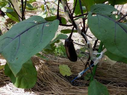 また、実際に実っている野菜の姿の撮影のために、立派に実っている「なすび」を農園の生徒に見つけてもらって、撮影をしていました。チラシの出来上がりが楽しみです。
