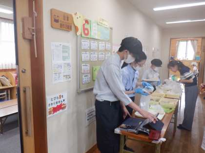 6月25日(水)に錦林児童館にてパン販売をさせていただきました。今回は、1年生1名と2年生1名の2名で担当しました。2年生の先輩から準備の仕方などを教えて貰いながら、2人で協力して販売準備を行うことができました。販売時には、役割を分担して対応する姿が見られました。