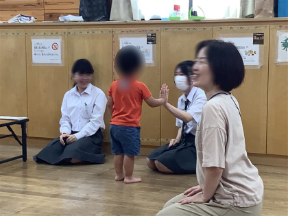 初めのうちは、幼児の皆さんと上手に関われるか不安でしたが、徐々に慣れて、最後にはハイタッチをしてもらえました。