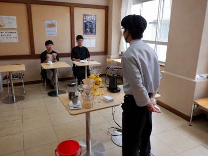 淹れたコーヒーは小川珈琲の皆さんに試飲していただき、採点&アドバイスもいただきました。