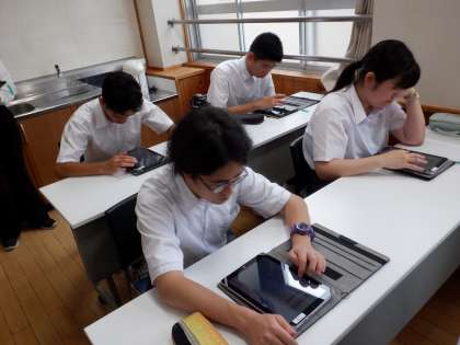7月17日(木)5・6時間目に2年生が『体験型ネットトラブル対策講座』を受講しました。京都府警察サイバー対策本部の方にお越しいただき、実際にタブレット端末を操作しながら、SNS投稿の危険性や投稿することへの影響などを具体的に教えていただきました。