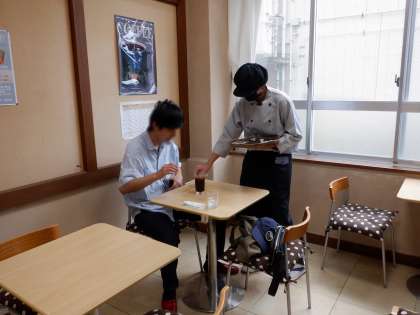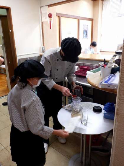 本日から喫茶ミルキーウェイの営業を再開しました。また、今日から1年生も喫茶の接客を担当しています。先輩と一緒にお客さまから注文を受けたり、コーヒーをドロップしたりしました。緊張ししながら、自分が入れたコーヒーをお客さまに提供する姿が見られました。1つ1つの動作や作業を覚えて、自信を持って接客できるよう、力をつけていってほしいと思います。
