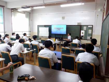 9月4日(金)5時間目に、2年生が『非行防止教室』を受講しました。ニュースでも良く耳にする”闇バイト”に勧誘される手口や、知らない間に詐欺に加担していた事例など、自分自身が知らないうちに犯罪を犯してしまう危険性についての話を聞きました。日頃から気を付けておくことが大切なことを教えていただき、自分の身を守るための行動について考えました。