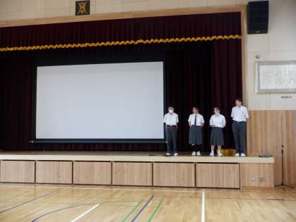 また、それぞれが舞台に立ってマイクで話す経験をしました。本番まで約1ヵ月。協力しながら準備を進め、1年生全員で発表の舞台を作り上げていってほしいと思います。