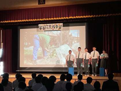 続いて、1年生の発表です。入学してから今日を迎えるまで185日。今まで、取り組んできたこと、学んだこと、自分が成長できたことなどが発表されました。