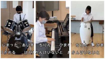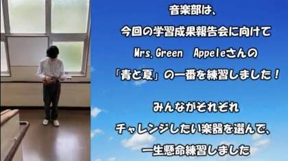 続いて、音楽部の発表です。音楽部は、それぞれが楽器を担当し、演奏しました。その様子を映像で発表しました。