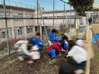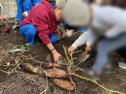 11月6日(木)の午前中、農園芸が地域協働活動を行いました。錦林児童館の利用者の方に来校いただき、交流農園活動で芋ほりを行いました。