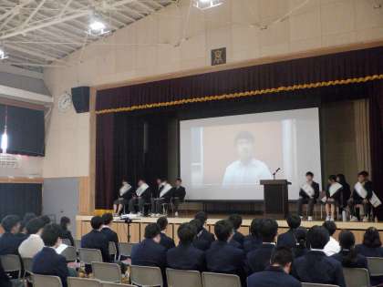 11月6日(木)5・6時間目に、生徒会本部役員選挙を行いました。5時間目には、立会演説会を行い、立候補者・推薦人が演説で、それぞれの学校への思いや、これからの意気込みなどを語りました。実習等で参加できない生徒は、事前に動画を撮影したり、期日前投票を行ったりして、選挙に参加しました。