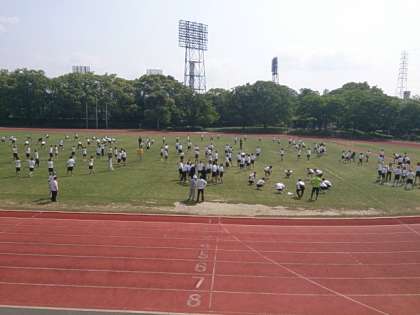 今日は白河総合支援学校、鳴滝総合支援学校が中心に行う西京極総合運動公園での陸上記録会です。