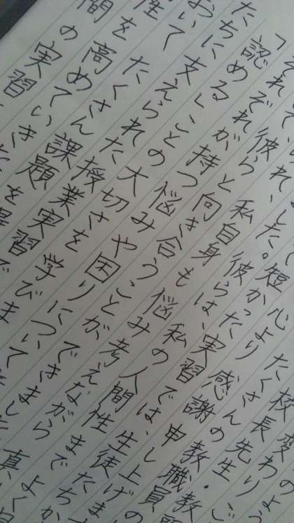長いようで短かった教育実習では、生徒たちから学ぶことが多くありました。彼らは私の人間性までよく見ているように感じられ、私自身も悩み考えながら真剣に一人の人間として、彼らと向き合うことができました。