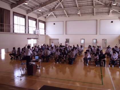 その後、数人のグループに分かれ、「自分の家に住んでいるのに家に帰ると出ていこうとする家族」にどう接し、どう対処したらいいか」等の事例について6,7人のグループに分かれて意見を出し合い、各グループで発表をしました。