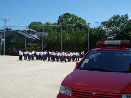 生徒達はハンカチを口に当てながらグランドへ避難して行きました。
