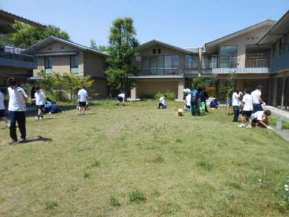 2日目は,午前7時に起床,朝食を終えて広沢の池方面に散策に出かけました。10時からは,全員で施設内の草引きや掃除を担当し,感謝の想いをこめて清掃活動をしてきました。昼前には「宇多野ユースホステル」を後にし,13時過ぎには,学校に到着しました。実り多い宿泊にこれからしていきます。