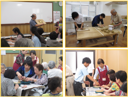 サンドウィッチ、具だくさんの手作りスープと煮豆の昼食の後「陶芸教室」がおこなわれ、午前中に粘土や道具の準備をしていた東山サービスの生徒たちがスタッフとして、大活躍をしていました。
