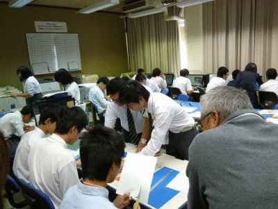 学校長挨拶、教育課程の説明の後、情報印刷2年生による「専門教科の説明」がありました。