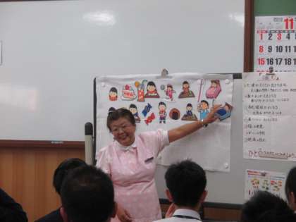 5校時に1年生、6校時には2年生対象に、歯科衛生士の白本さんによる、歯みがき巡回指導がありました。