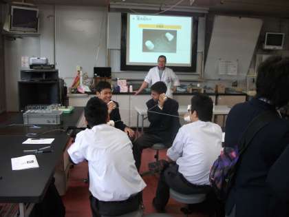 13日(午前)科学センター学習に1年生が参加しました。普段,学校ではなかなかできない理科実験に取り組みました。食品加工は「ふるえて,つたえて,おっとっと(音の伝わり・物理),農園芸は「シロアリ(生物)」情報印刷は「水の正体・なるほどウオーターワールド(化学)」について学習しました。初めて体験すること,初めて見た映像、に歓声が上がり,とても楽しそうでした。未知の世界に挑戦することの素晴らしさを感じた科学センター学習でした。
