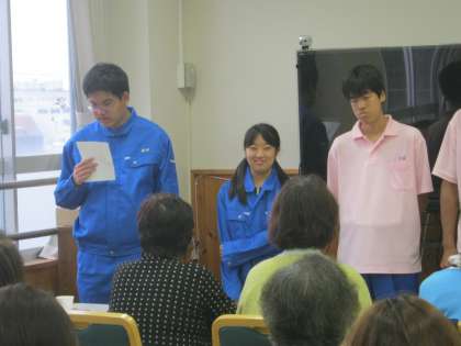 会議のはじめに,認知症サポーター講座の振り返りを行い,1年農園芸の生徒が一人ずつ,報告をしました。また,食品加工の生徒がコーヒーを提供するなど学習の場の広がりを感じました。