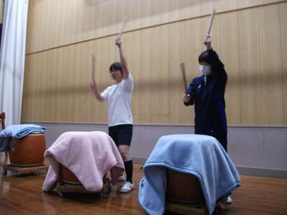 地域感謝祭のオープニングや地域のイベントなどでの演奏に向けて,放課後の時間を使って練習しています。力強く演奏ができるように協力しながら取り組んでいます。