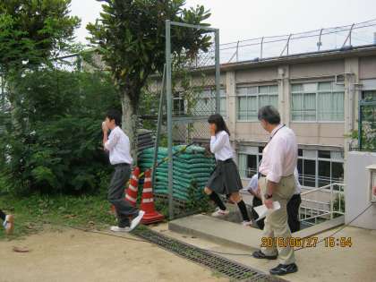 生徒も教職員もスムーズに避難できました。生徒の多くがハンカチなどを持参し,避難の際に口にあてる姿が見られました。