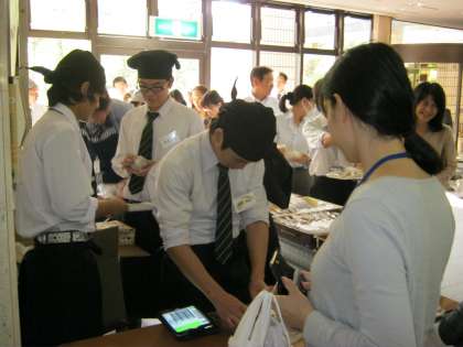 総合教育センターに移動し,11時45分から販売をしました。3年生中心に落ち着いて販売し,菓子パン,焼き菓子を完売できました。レジ打ちも金額の合わせも完璧でした。