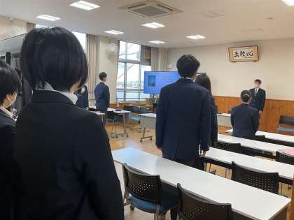 1月8日(木)より、授業が再開しました。1時間目には、配信による全校集会が行われました。校長先生からは、冬季休業前にお話しがあった1年の振り返りと新しい年の目標について宿題についての問いかけがありました。3月にかけて学年の総仕上げとして、今までの経験を基に成長した自分の姿や新たな課題に目を向けて、自信を持って取り組んでいってほしいとメッセージが送られました。また、今年は強さと輝きを表す年『午年』ということで、目標に向かって努力することで輝き、目標の実現に近づく1年となることを期待していると伝えられました。学年集会の後半には、作品展の表彰なども行われました。