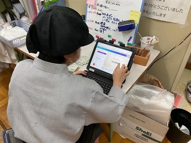 食品加工室を覗くと、生徒がパン販売のための新しいポップ作りをしていました。今までのポップをより見やすく、わかりやすくするためにデザインを検討していました。出来上がりが楽しみです。
