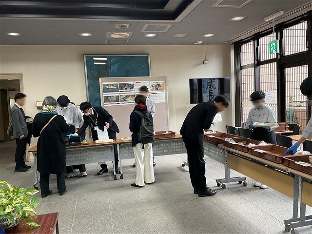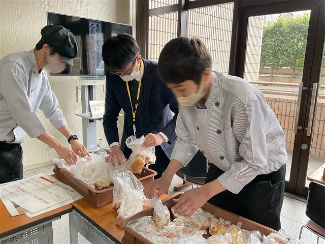2月6日(金)に総合教育センターで、パン販売をさせていただきました。今回は、1年生が担当しました。現地集合のため、販売時間に遅れないよう、時間を逆算して準備をし、学校を出発しました。初めての場所でのパン販売でしたが、声を掛け合いながら、みんなで協力する姿が見られ、たくさんのお客様へ販売することができました。