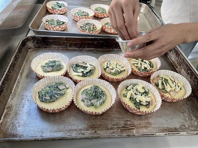 専門科食品加工『新製品』~ハムほうれん草パン~