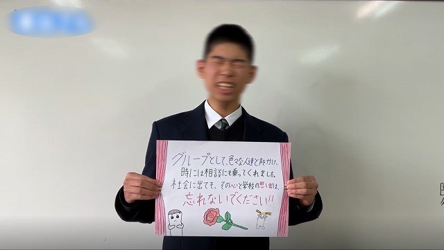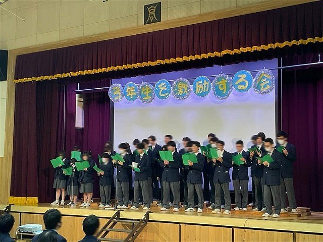 2年生からは、3年生ひとり一人への感謝の気持ちを伝え、最後に合唱の歌声がプレゼントされました。2年間、一緒に学習してきた先輩との別れに寂しい思いと、先輩からのバトンを引き継いで、次は自分たちが最上級生になるという覚悟が感じられる発表でした。