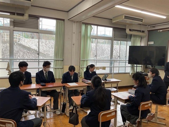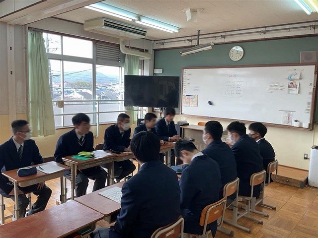 3月2日(月)5・6時間目に、1年生と3年生が合同で『職業生活』の授業を行いました。授業では、1年生から学校生活で楽しかったことや大変だったこと、実習でのエピソードなど、様々な質問が投げかけられ、3年生は3年間を振り返りながら丁寧に答えていました。3年生からは「自分も1年生の時はそうやった」という声も聞かれ、あらためて自分の成長を実感する機会となりました。また、1年生にとっても、普段は作業などがあってじっくりと話をする機会が少ないなめ、今回の時間は、とても貴重な時間をなりました。先日の2年生との授業とは異なる質問が上がっていて、3年間でキャリアを積み重ねてることも実感できる機会となりました。