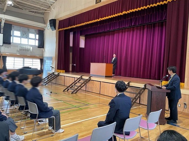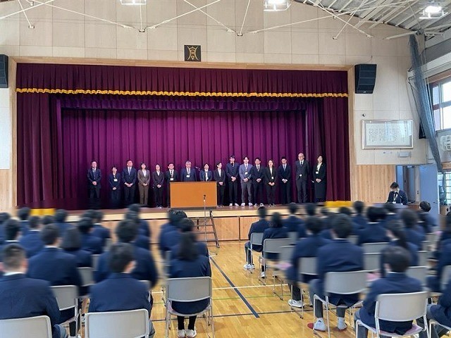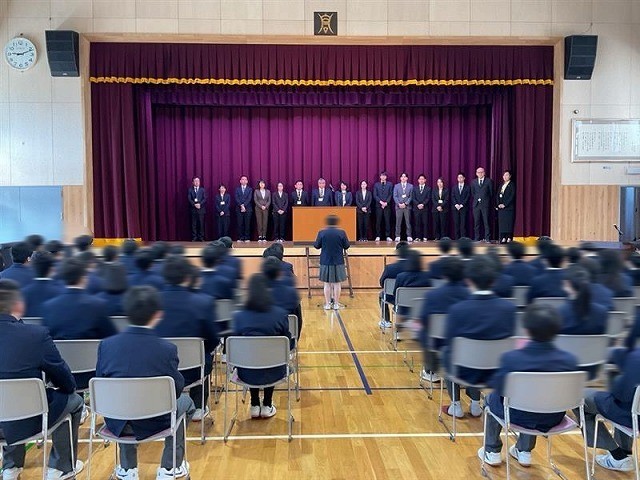 始業式に先駆け、令和8年度着任式を行いました。総勢16名の新しい教職員を迎え、令和8年度のスタートです。生徒がなりたい自分の実現に向け、挑戦していく姿を全力で支えていきたいと思います。どうぞよろしくお願いいたします。