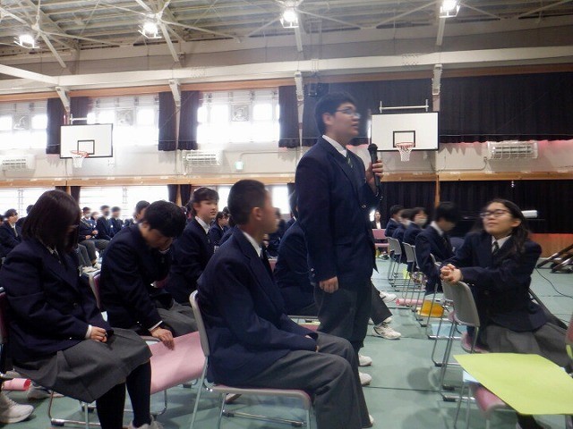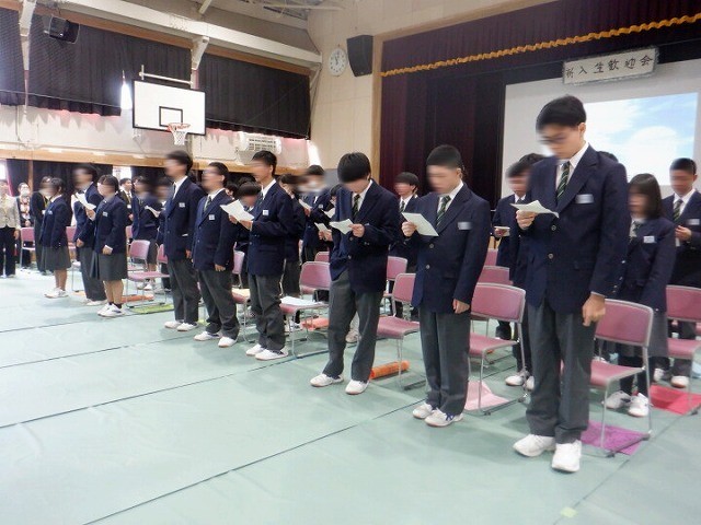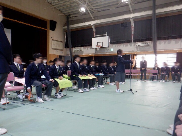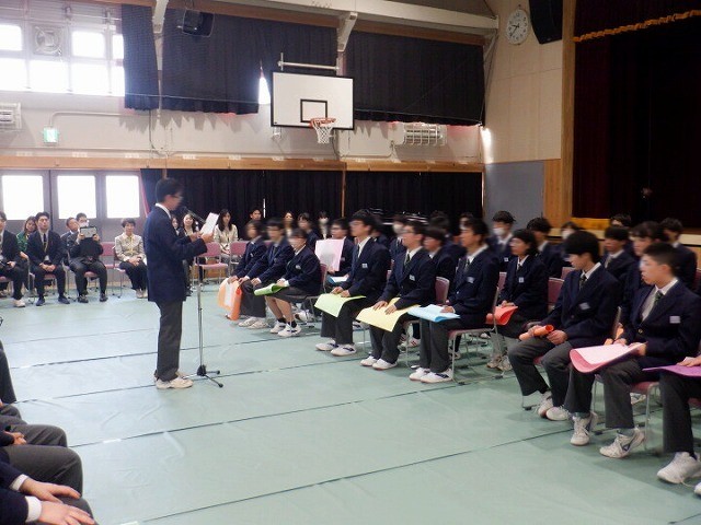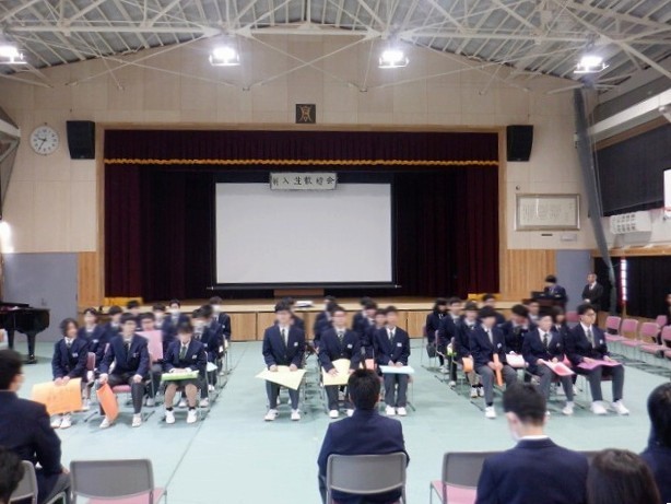 4月16日(木)に『新入生を歓迎する会』を行いました。2・3年生、教職員からの歓迎の拍手の中、生徒会のプラカードを先頭に、各クラスごとに新入生が入場しました。はじめに、全員で校歌を歌いました。つづいて、3年生から『COSMOS』、2年生から『マイバラード』の、歓迎の歌のプレゼントがありました。1年生からは、自己紹介と白河での目標が発表されました。「つきたい職につく!」「先輩や友だちにたくさん質問して、成長します。」など、さまざまな目標が発表されました。初心を忘れず、3年後の自分に胸を張れるよう、1日1日を過ごしてほしいと思います。部活動紹介のあと、最後にもう1曲、『Believe』を全員で歌って、歓迎会の幕が下りました。