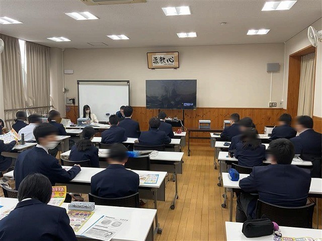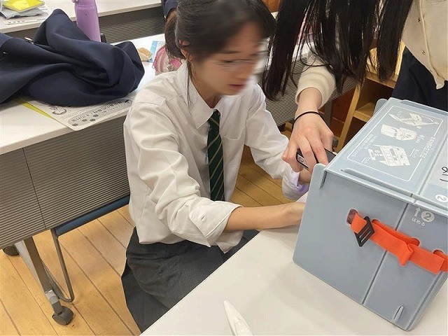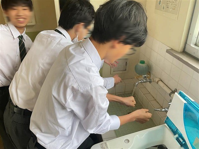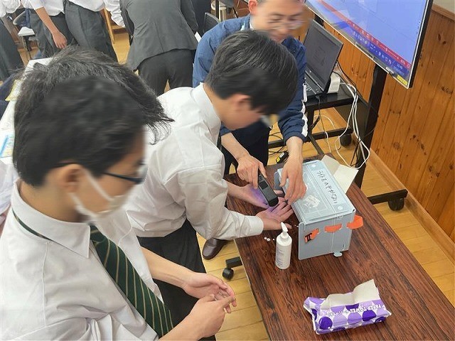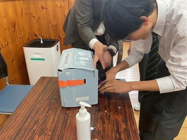 4月17日(金)2・3時間目に1年生が『食品衛生講習会』を受講しました。4月に入り、一気に気温が上がり、半袖でも過ごせる日が出てきました。気温が上がると、食中毒などのリスクが高くなります。今日は、食品衛生に大切なことをたくさん教えていただきました。何よりも大切な『手洗い』については、実際に手洗いに取り組みました。ウィルスや汚れの代わりとなる特殊なクリームを手に塗り、石鹸を使って手を洗いました。手が綺麗になっているかを、特殊な光を当ててチェック!いつもより、念入りに手洗いしたつもりでも、まだ、汚れが残っていることが可視化できると、「こんなに残ってるー」「指の間が・・・」などの感想が聞かれ、手洗いの難しさも実感することができました。今日学んだことを、これからに活かしてほしいと思います。