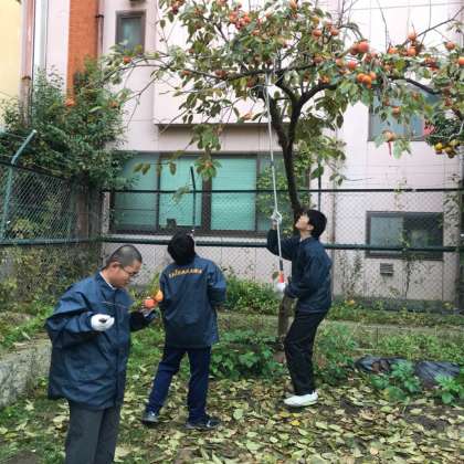養正サテライト施設の畑には大きな柿の木があり、毎年たくさんの甘〜い実をつけます。「鳥に食べられてしまう前に!」と、生徒たちで収穫を行いました。初めて使う高枝ばさみは少し難しかったですが、すぐに慣れて、面白いようにどんどん収穫が進みました。次々に落ちてくる柿を上手にキャッチするのも至難の技でしたが、皆のチームワークでカゴにどっさり収穫できました!