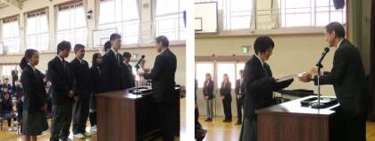 校長が,各種受賞した生徒たちにトロフィや賞状などを手渡し,大きな拍手で栄誉を称えました。
