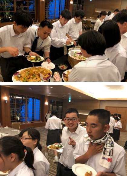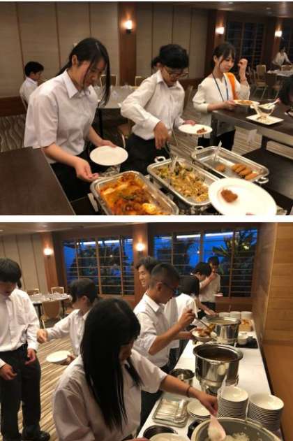 夕食です。バイキングで好きなものを選んでいます。