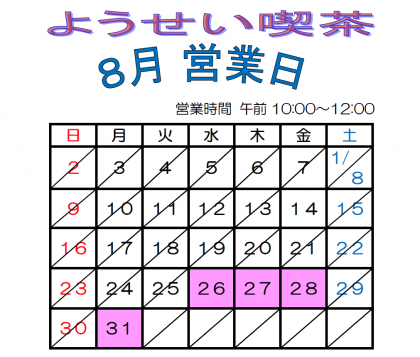 ようせい喫茶と図書館開館のお知らせ(8月)