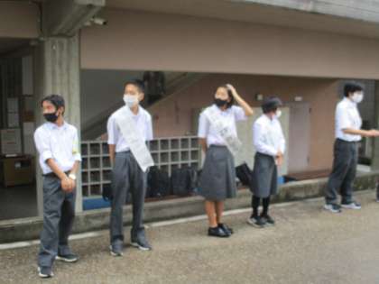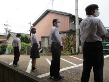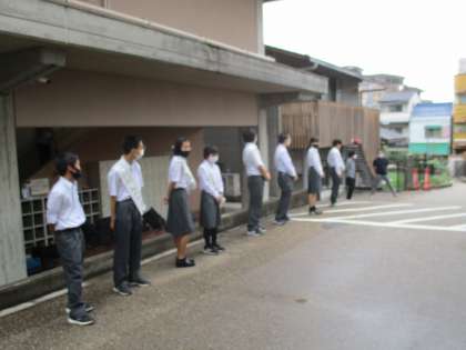 登校の際に立候補メンバーが集まって挨拶運動をしました