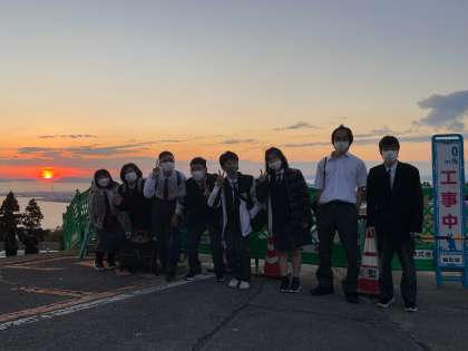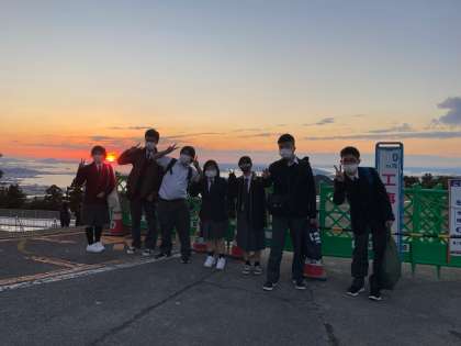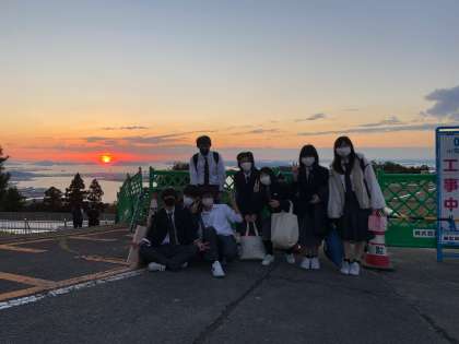 各クラス綺麗な夕焼けをバックに写真を撮ることができました。