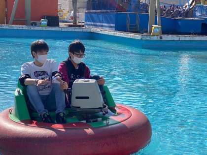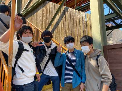 自由時間の様子です。アクティブ班とゆっくり班に別れてまわり、アトラクションにもたくさん乗ることができました。