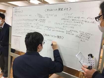 最後にお互いの発表の感想では,「コロナウイルスの影響で京都に修学旅行が行けなくなったけど,動画を見たら来年行きたくなりました。」という言葉があり,本校の生徒からも「きりたんぽやプリンの種類がたくさんあり,食べてみたい」とお互いの地域に興味を持てるとても良い交流となりました。