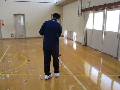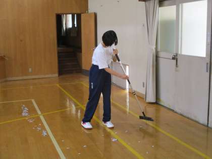 1年生が体育館にて清掃演習オリエンテーションを行いました