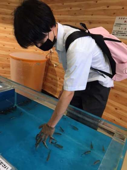 お昼ご飯を食べてからも水族館で魚たちと触れ合っています!