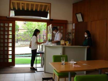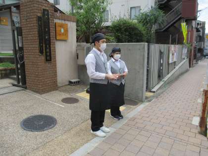 通行をしている方にお声を掛けながら、丁寧に配っています