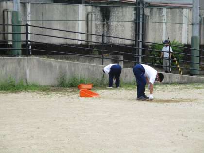 みんなで力を合わして、グラウンドを綺麗にしてくれています