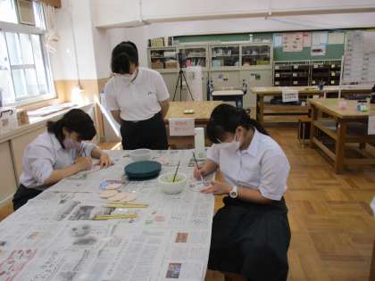 東山サービスではお皿の絵付け体験をしています