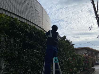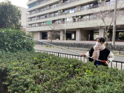 養正サービスの3年生が、養正サテライト施設周辺の植込みの剪定作業を行いました