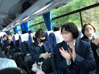 バス内ではレクリエーション係によるイントロクイズで大いに盛り上がっています!!