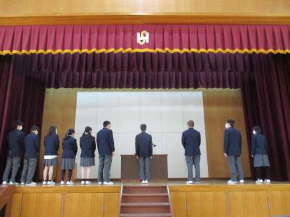 卒業証書授与式予行の後、「第22回全国障害者スポーツ大会陸上競技」「ビジネス検定検定速度部門」「第20回アビリンピック京都大会パソコン入力部門」の3年生の表彰を行いました